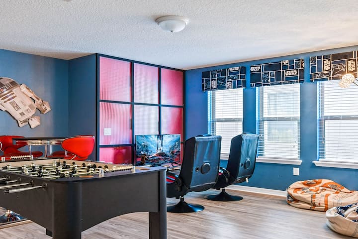 ชั้นบนสนุกไม่รู้จบในห้องเล่นเกมที่น่าตื่นตาตื่นใจ🎮พร้อมฮอกกี้อากาศฟูสบอลและโต๊ะพูล ด้วยห้องนอนที่กว้างขวางและสิ่งอำนวยความสะดวกสไตล์รีสอร์ทที่พักแห่งนี้สัญญาว่าการเข้าพักที่น่าจดจำเพียง 16 นาทีจากดิสนีย์และ 26 นาทีจากยูนิเวอร์แซล!
