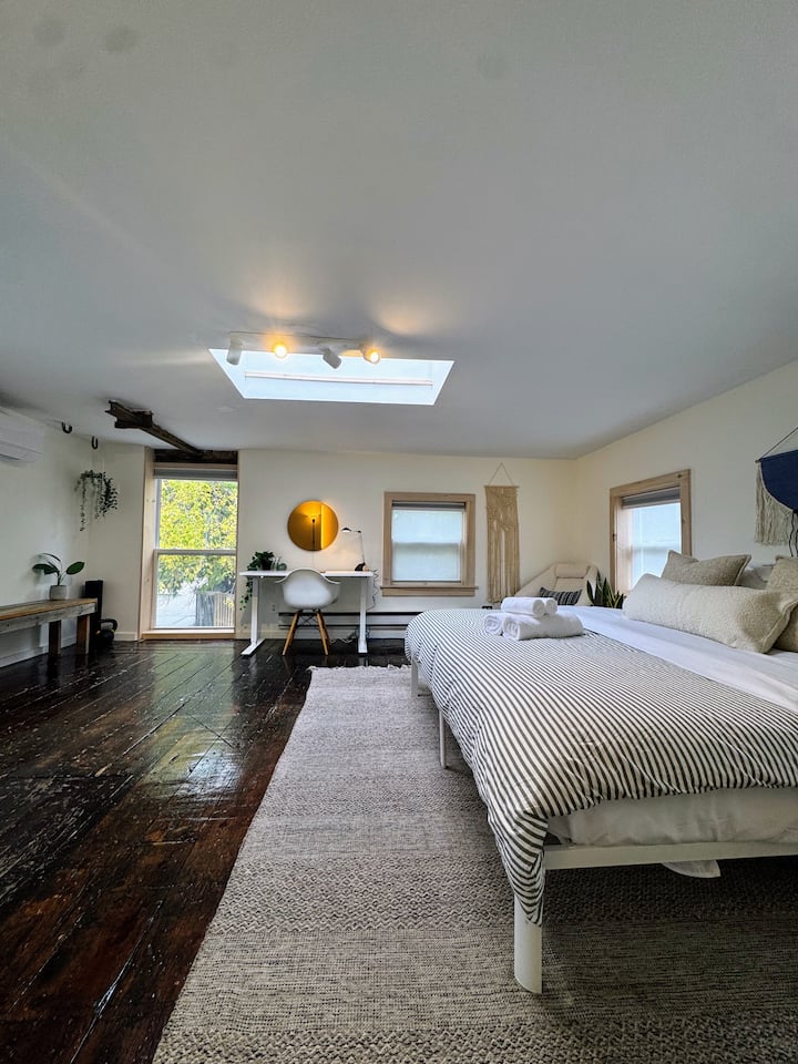 เติมพลังในลอฟท์ประวัติศาสตร์พร้อมเตียงคิงไซส์และที่จอดรถ