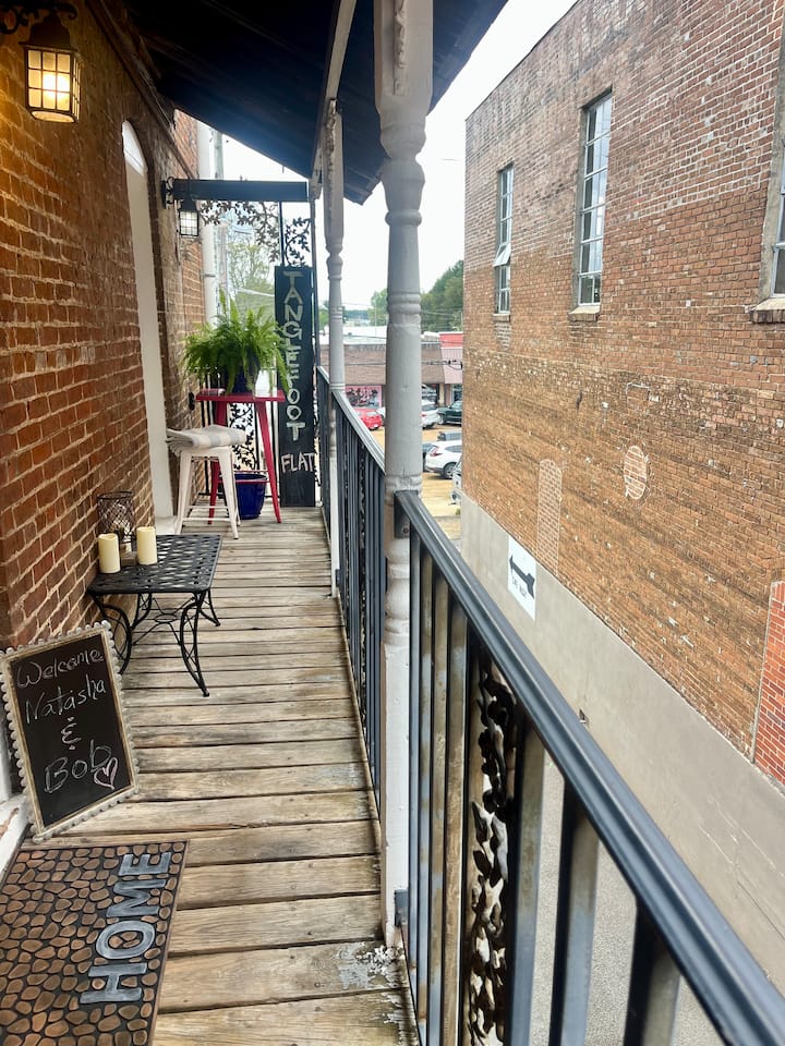 ก้าวออกไปที่ระเบียงส่วนตัวสไตล์นิวออร์ลีนส์ซึ่งเป็นจุดที่สมบูรณ์แบบสำหรับกาแฟยามเช้าแสงแดดยามบ่ายหรือไวน์สักแก้วยามเย็น นอกจากนี้ยังเป็นที่ชื่นชอบของผู้เข้าพักสำหรับการเล่นดนตรีการวาดภาพการเขียนหรือเพียงแค่ผ่อนคลายและชมความงามที่เงียบสงบของมิสซิสซิปปีในเมืองเล็กๆ