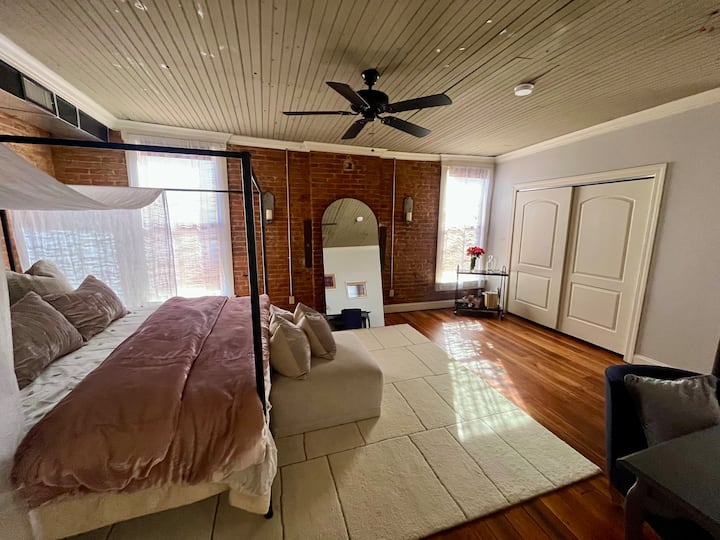 ลอฟท์ที่ได้รับการบูรณะอย่างสวยงามแห่งนี้ล้อมรอบด้วยร้านบูติคคาเฟ่และร้านอาหารที่ดีที่สุดของเมือง! ปีนบันไดไปยังระเบียงส่วนตัวสไตล์นิวออร์ลีนส์จุดที่เหมาะสำหรับจิบกาแฟยามเช้าหรือค็อกเทลยามเย็น สถานที่พักผ่อน 1 ห้องนอน 1 ห้องน้ำที่กว้างขวางผสมผสานประวัติศาสตร์และความสะดวกสบายเข้ากับเพดานที่สูงตระหง่านและผนังอิฐฉาบปูน ห้องนอนให้บรรยากาศโรแมนติกและห้องน้ำมีโต๊ะเครื่องแป้ง 2 ชั้น ห้องครัวที่มีอุปกรณ์ครบครันมีเครื่องใช้ไฟฟ้าที่มีคุณภาพและเครื่องซักผ้า/เครื่องอบผ้า