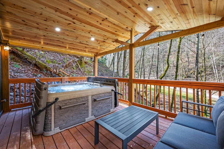 ลอดจ์สไตล์ชนบททันสมัย มีอ่างน้ำร้อน อาร์เคด เหมาะสำหรับสัตว์เลี้ยง