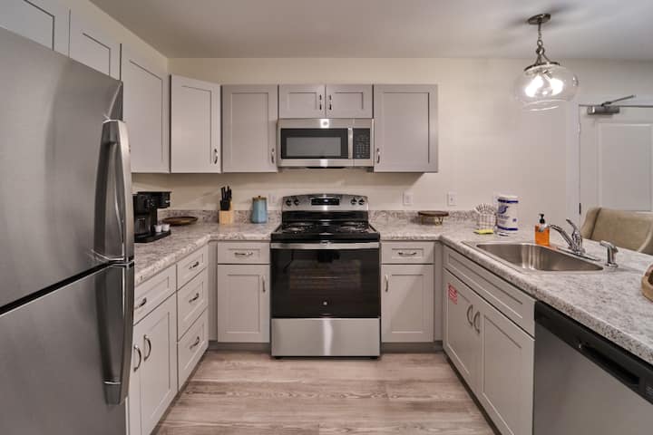 เพลิดเพลินกับความยืดหยุ่นในการเตรียมอาหารของคุณเองในห้องครัวที่ตกแต่งอย่างดี ตกแต่งอย่างดีด้วยตู้เย็นขนาดใหญ่เครื่องล้างจานเตาไมโครเวฟและเครื่องใช้ในครัวอื่นๆที่สมบูรณ์แบบสำหรับการทำอาหารเช้ากลางวันหรือเย็นตลอดการเข้าพักของคุณ! หม้อกระทะแก้วจานชามช้อนส้อมฯลฯทั้งหมดก็พร้อมให้บริการคุณเช่นกัน! มารวมตัวกันที่โต๊ะรับประทานอาหารที่น่านั่งเพื่อแบ่งปันเรื่องราวและเสียงหัวเราะเพราะมันชวนให้คุณลิ้มรสอาหารแต่ละครั้ง