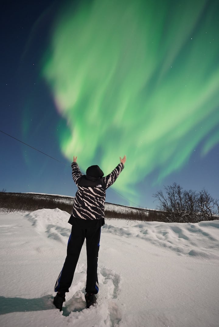 6: ระยะเวลาการเดินทาง 7-8 ชั่วโมง ขึ้นอยู่กับจุดหมายปลายทางที่เราจะขับรถในคืนนั้นและระยะเวลาที่เราต้องรอสำหรับกิจกรรม หลายครั้งที่เราขับรถไปยังฟินแลนด์ไกลถึง 250 กม. จากทรอมโซในแต่ละทิศทาง เช่น ทิศใต้ ทิศเหนือ ทิศตะวันออก และทิศตะวันตกของทรอมโซ เพื่อหาท้องฟ้าที่ปลอดโปร่ง และระยะเวลาการเดินทางอาจนานถึง 9 ชั่วโมงโดยไม่มีค่าใช้จ่ายเพิ่มเติม