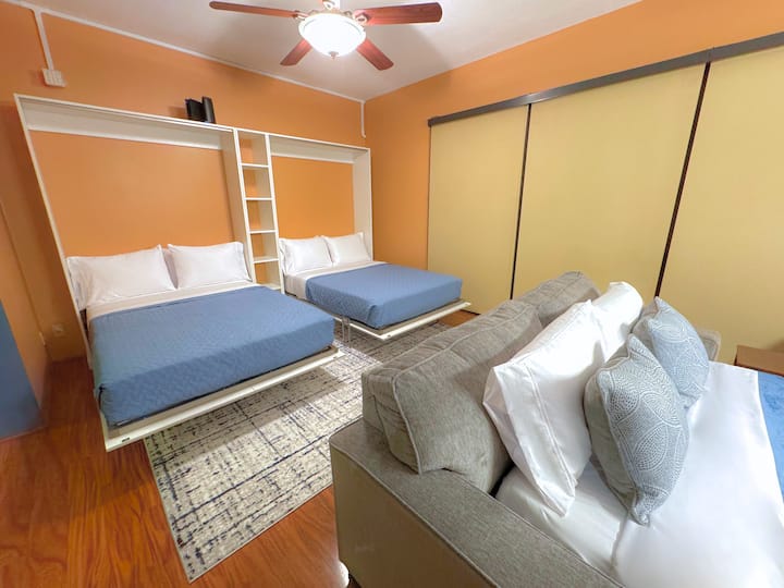 พักใจกลางเมืองโฮโนลูลูเพียง 10–15 นาทีจากไวกิกิและสนามบิน และอยู่ไม่ไกลจากร้านอาหาร บาร์ และกิจกรรมที่ยอดเยี่ยม ที่พักขนาดใหญ่นี้สามารถรองรับได้ถึง 10 คน เหมาะสำหรับครอบครัว/กลุ่มใหญ่ มีห้องนอนหลักและห้องนั่งเล่นอเนกประสงค์ที่ใช้เป็นห้องนอนเสริมได้