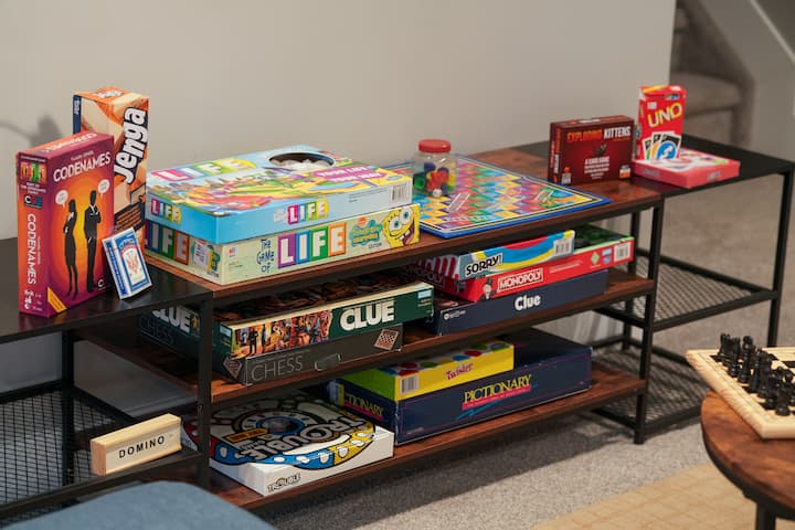 คนรักเกมกระดานจะเพลิดเพลินกับเกมคอลเลกชันขนาดใหญ่ของเรา ตั้งแต่เกมคลาสสิกอย่าง Monopoly, Life, Twister, Scrabble และหมากรุก ไปจนถึงเกมโปรดสมัยใหม่อย่าง Telestration, Codenames และ Uno ด้วยเกมให้เลือกกว่า 20 เกม ทุกครอบครัวจะได้เพลิดเพลินและใช้เวลาทั้งคืนอย่างสนุกสนาน!
