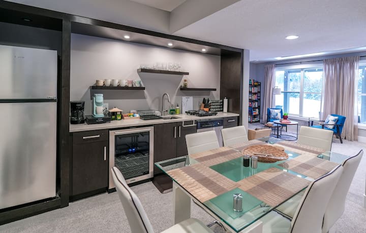 ไม่มีเตาอบเต็มรูปแบบ แต่ห้องครัวของเรามีเตาไฟฟ้า อุปกรณ์ทำอาหารคุณภาพสูง และมีดเชฟเพื่อเตรียมอาหารอย่างสะดวกสบาย อาหารเช้าง่ายๆ พาสต้าค่ำ หรืออาหารที่ทำในเตาอบแผ่นยังง่ายยิ่งขึ้นด้วยชุดเครื่องเทศพื้นฐานที่เราจัดเตรียมไว้ให้ ในเดือนที่อากาศอบอุ่น ให้จุดไฟเตาย่างกลางแจ้งและรับประทานอาหารบนระเบียง!