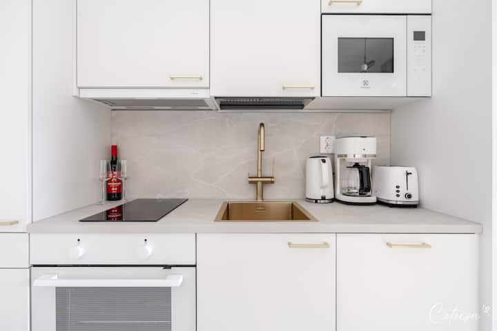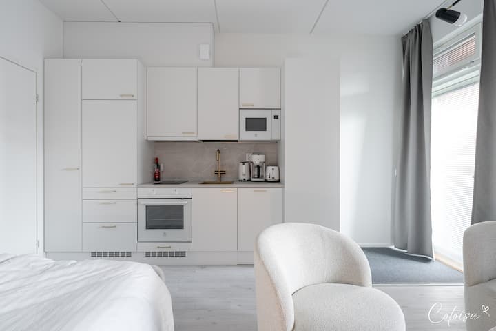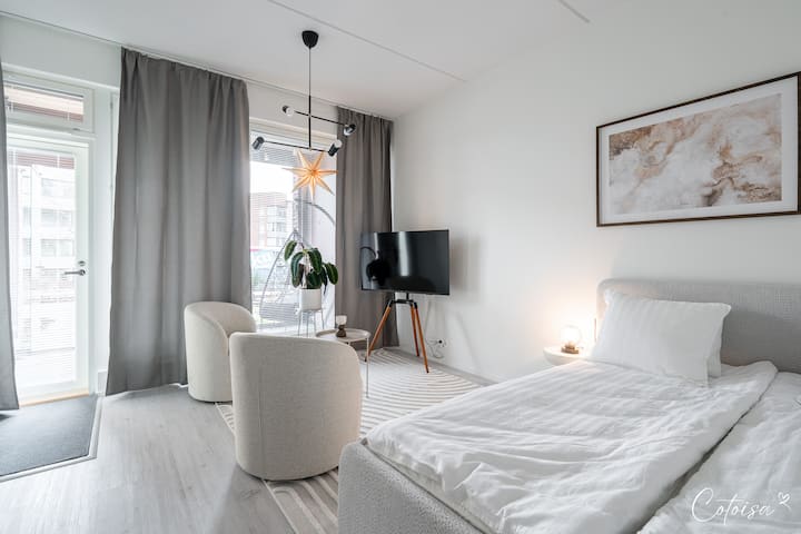 อพาร์ทเมนท์ใหม่เอี่ยมพร้อมซาวน่าและระเบียงส่วนตัว