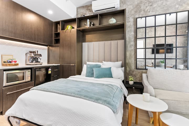 สตูดิโอสไตล์ชิคที่เป็นที่หลบพักผ่อน | ใกล้แม่น้ำและย่านธุรกิจกลาง