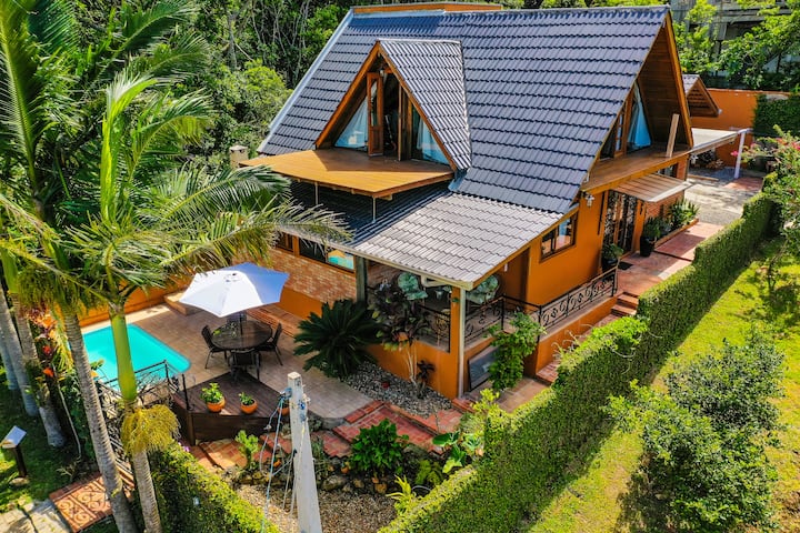 ชาเล่ต์สวยงามพร้อมสระว่ายน้ำและวิวทะเล ล้อมรอบด้วยธรรมชาติ