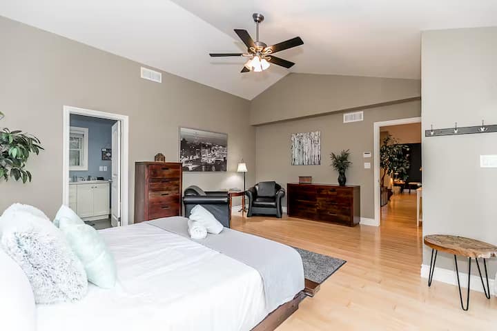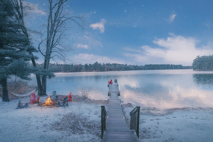 พักผ่อนริมทะเลสาบฤดูหนาว: 4 ห้องนอน เกม และเตาผิง