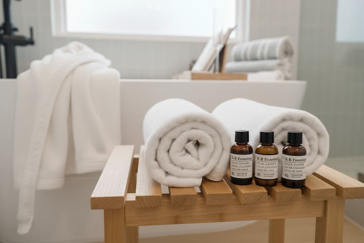 ห้องนอนทุกห้องมีสมาร์ททีวีจอแบน เครื่องนอนระดับพรีเมียม ผ้าม่านบล็อกแสง และเต้ารับ USB มากมาย