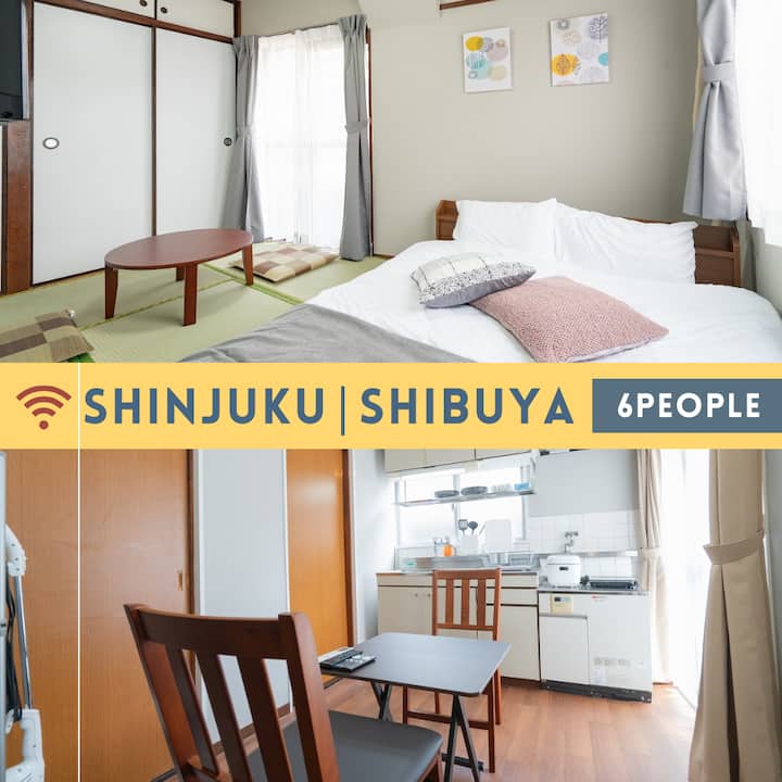 ชินจูกุ/ชิบูย่า/6 คน/เดิน 3 นาทีถึงสถานี/Wi-Fi