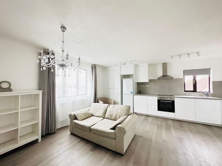 แฟลตหนึ่งห้องนอนสไตล์โมเดิร์นตั้งอยู่บนชั้น 3