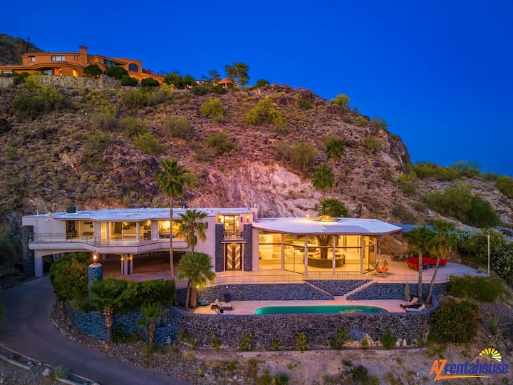 โอเอซิสของนักออกแบบราคาหลายล้านดอลลาร์นี้ตั้งอยู่บนเนินเขา มีวิวภูเขาที่ไม่มีสิ่งกีดขวางจากทุกทิศทาง ดาดฟ้าวิวสวยงาม 240 องศาของแสงไฟในเมือง ภูเขาแคเมลแบ็ค ภูเขามัมมี่ และสนามกอล์ฟ PVCC
