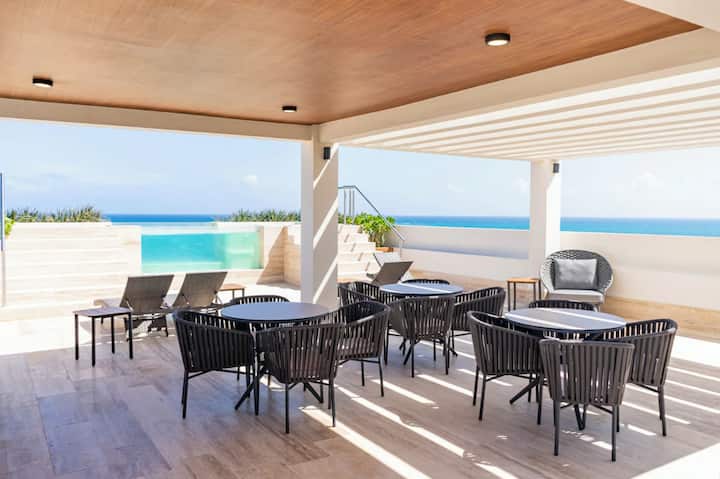 อพาร์ทเมนท์ริมทะเลพร้อมสระว่ายน้ำบนดาดฟ้า
