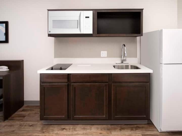 ห้องสวีทควีนไซส์ที่เป็นมิตรกับสัตว์เลี้ยงพร้อมห้องครัว ห้องออกกำลังกาย และห้องซักรีด