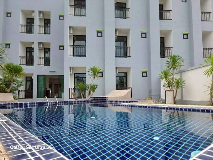 นี่เป็นหนึ่งในที่พักไม่กี่แห่งของย่านนี้ที่มีสระว่ายน้ำ