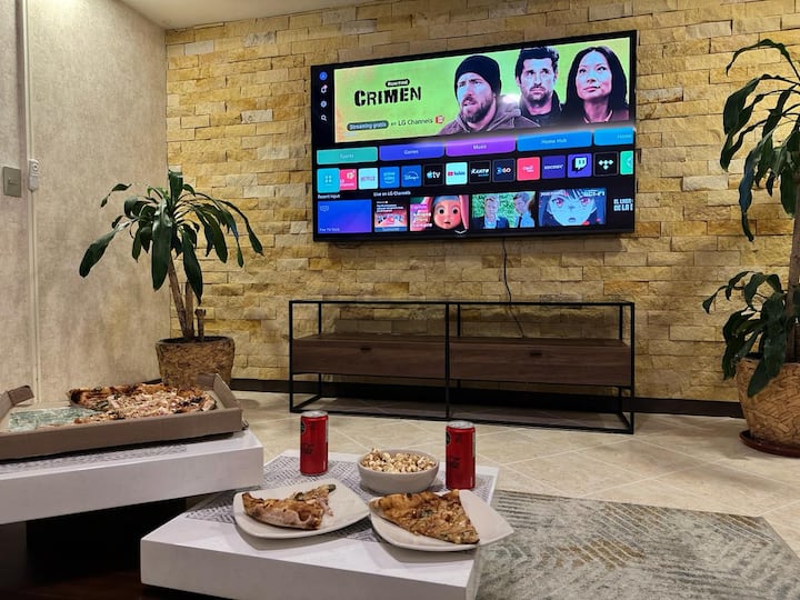อพาร์ทเมนท์ชั้นบนสุดสไตล์โมเดิร์นในมะนิลา โปบลาโด มี 2 ห้องนอนและ 3 ห้องน้ำ รวมถึงฝักบัวอาบน้ำแบบฝนและอ่างน้ำวนนวด มีเครื่องปรับอากาศติดผนัง สมาร์ททีวี 2 เครื่อง (75" และ 50") ระเบียง บาร์อาหารเช้า และห้องครัวที่มีอุปกรณ์ครบครัน เพลิดเพลินกับ Wi-Fi 500 Mb แสงไฟที่ควบคุมด้วย Alexa พัดลมเพดานแบบรีโมต และเครื่องซักผ้า/เครื่องอบผ้า AI ขนาดใหญ่เพื่อการเข้าพักที่ชาญฉลาดและสะดวกสบาย