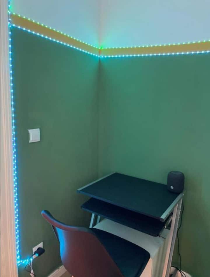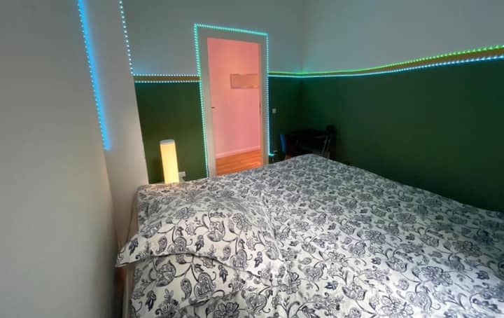 ห้องเอเมอรัลด์ในนอยเคิลน์ – เตียงคิงไซส์และพื้นที่ทำงาน