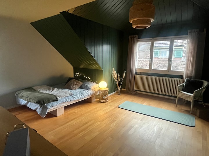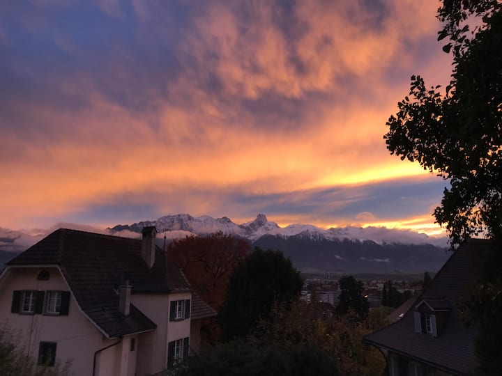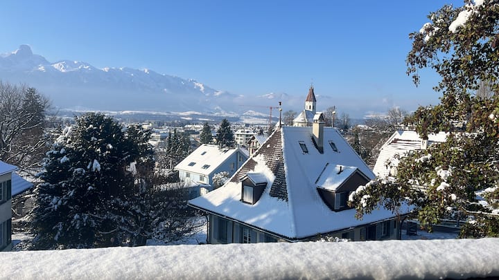 อพาร์ทเมนท์ขนาด 3.5 ห้องพักที่เงียบสงบและตั้งอยู่ใจกลางเมืองพร้อมวิวเทือกเขาแอลป์