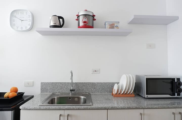 • โต๊ะรับประทานอาหาร เก้าอี้ปรับระดับได้ ไมโครเวฟ กาต้มน้ำไฟฟ้า หม้อหุงข้าว ตู้เย็น เครื่องครัว