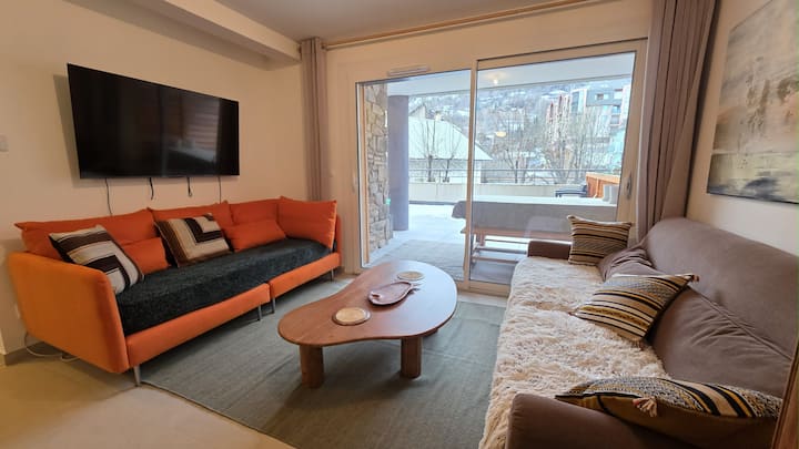 ออกเดินทางไปพักผ่อนเล่นสกีสุดประทับใจในอพาร์ทเมนต์ขนาด 60 ตารางเมตร ที่ตั้งอยู่ในทำเลที่ยอดเยี่ยมเชิงเขา ใจกลางหุบเขา Briançon-Serre Chevalier ห่างจากกระเช้า Prorel เพียง 150 เมตร