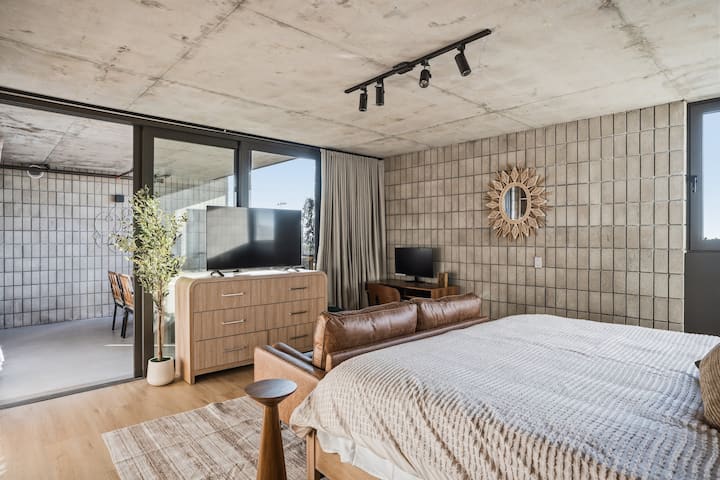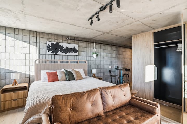 ภายในที่พักมีเตียงคิงไซส์ สถานีทำงานเฉพาะพร้อมจอคอมพิวเตอร์สำหรับมืออาชีพที่ทำงานทางไกล และรูปแบบเปิดโลกทัศน์ที่ทันสมัยที่ให้ความรู้สึกทั้งประณีตและกว้างขวาง เส้นสายที่สะอาดตาและการออกแบบหน้าต่างสร้างความรู้สึกระดับโรงแรมที่ยกระดับขึ้นทั่วทั้งห้อง