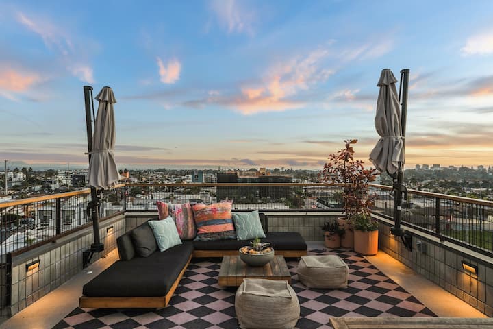 พื้นที่ใช้ร่วมกันสุดพิเศษสำหรับการผ่อนคลาย ทำงานกลางแจ้ง หรือเพลิดเพลินกับวิวพระอาทิตย์ตกดินเหนือซานดิเอโก