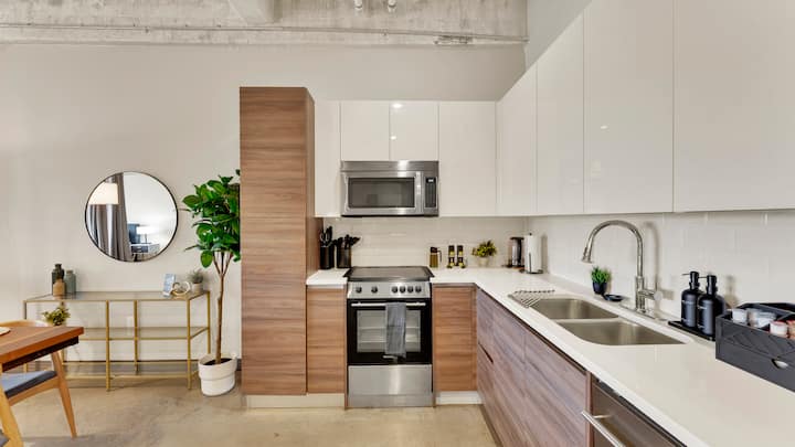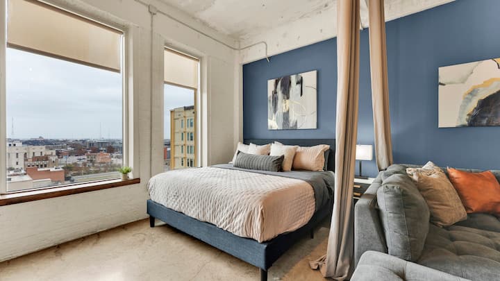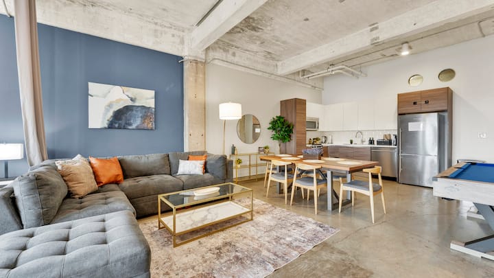 เพลิดเพลินกับลอฟท์เต็มรูปแบบพร้อมเพดานสูง 13 ฟุต ห้องนอนแยกต่างหาก และพื้นที่นอนที่ยืดหยุ่น ไม่ใช่ห้องพักโรงแรมที่คับแคบ