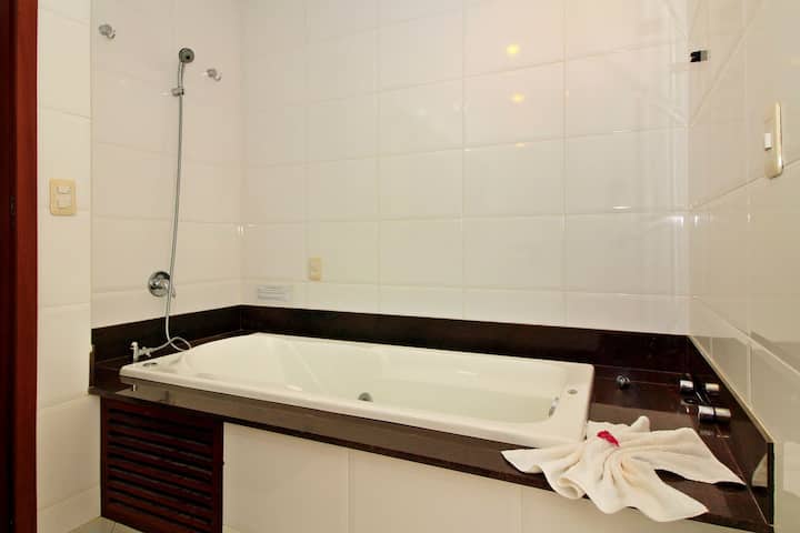 นี่เป็นหนึ่งในที่พักไม่กี่แห่งของย่านนี้ที่มีสระว่ายน้ำ