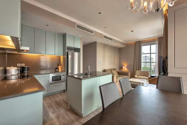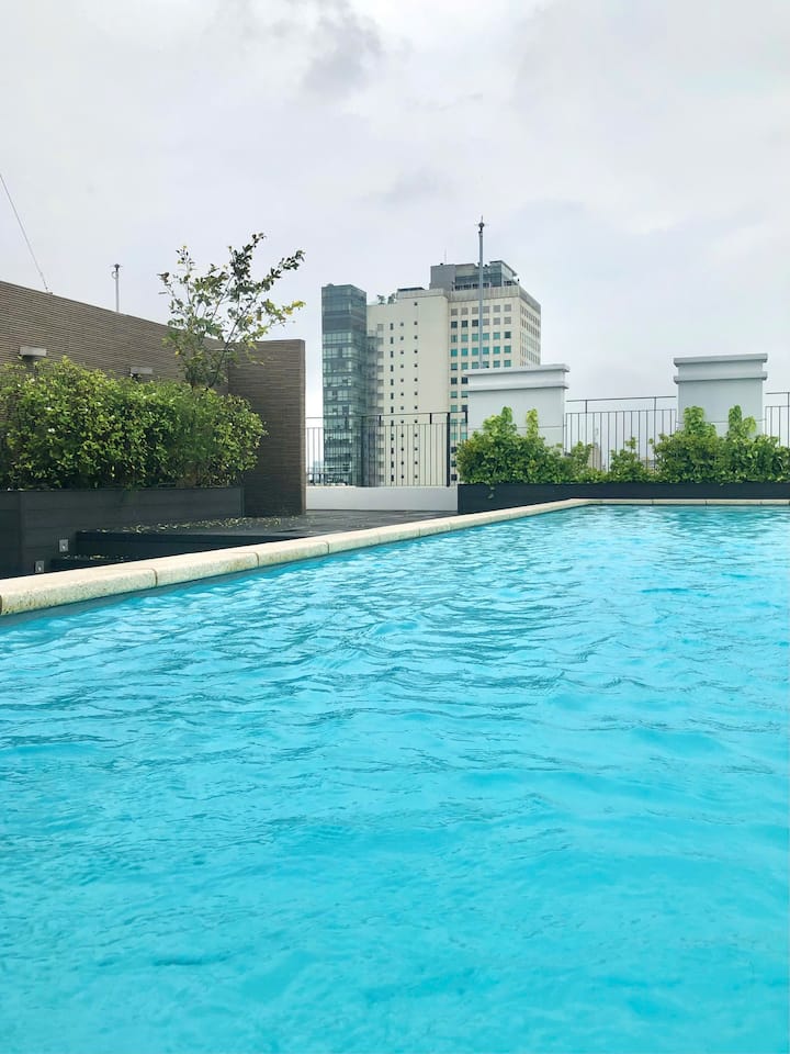 เซ็นทรัลไฮเอนด์ 2BR เซอร์วิสอพาร์ทเมนท์ใน D1-สระว่ายน้ำ