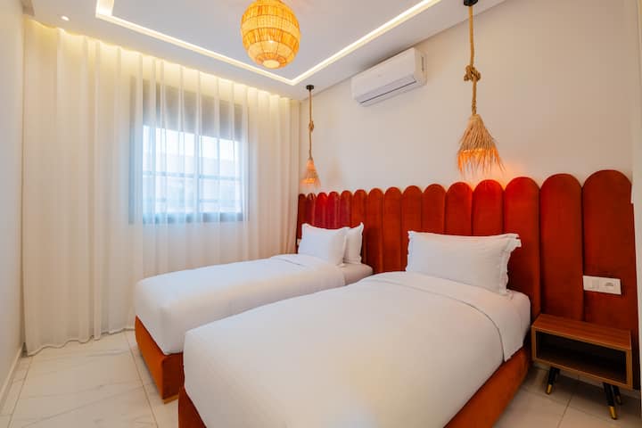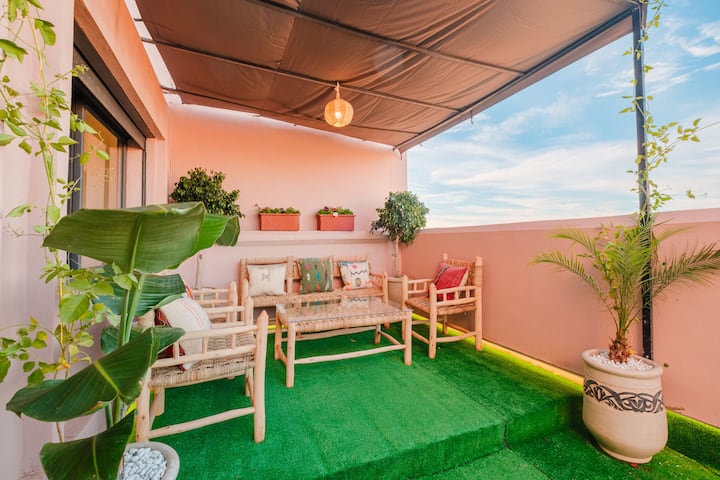 อพาร์ทเมนท์ที่ใช้งานได้จริงและสะดวกสบายพร้อมดาดฟ้า ตั้งอยู่ในทำเลที่เหมาะสมห่างจากทางเข้าสนามบินเพียงไม่กี่ก้าว เหมาะสำหรับการเข้าพักช่วงวันหยุดผู้เข้าพักที่อยู่ระหว่างการเดินทางการเข้าพักเพื่อการทำงานหรือการออกเดินทางตอนเช้าตรู่ที่พักแห่งนี้มีทุกสิ่งที่คุณต้องการเพื่อการเข้าพักที่น่ารื่นรมย์ เพลิดเพลินกับที่พักที่สะอาดและตกแต่งอย่างดี มีสมาร์ททีวีและ Wi-Fi ความเร็วสูง ใกล้สิ่งอำนวยความสะดวกและการเดินทางอพาร์ทเมนท์นี้เป็นฐานที่สมบูรณ์แบบของคุณในมาร์ราคิช