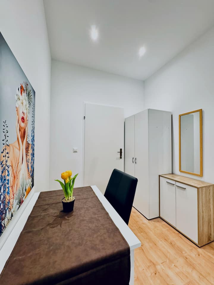 ห้องนอนส่วนตัวขนาด 12 ตร.ม. บนชั้น 3 (บันไดเท่านั้น) มีที่พักที่เรียบง่ายและอบอุ่นสำหรับผู้เข้าพักสูงสุด 2 คน ที่พักอยู่ห่างจากสถานีรถไฟ Wien Atzgersdorf เพียง 10 นาที สะดวกต่อการเดินทางโดยใช้ระบบขนส่งสาธารณะและเข้าถึงเมือง