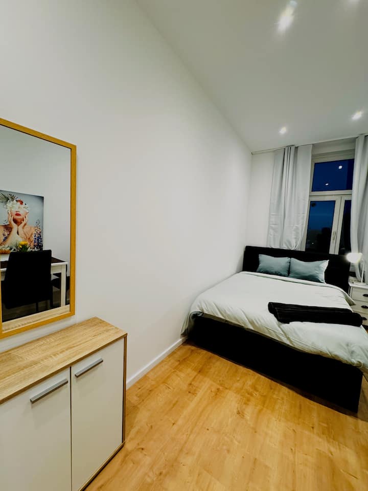 ห้องนอนส่วนตัวขนาด 12 ตร.ม. บนชั้น 3 (บันไดเท่านั้น) ของอาคารอพาร์ทเมนท์นี้ให้การเข้าพักที่ใช้งานได้จริงและสะดวกสบายสำหรับผู้เข้าพักสูงสุด 2 คน
