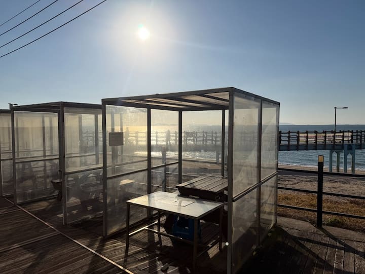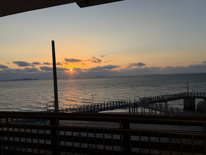 ตั้งอยู่หน้าชายหาดเชจู คุณจึงสามารถมองเห็นวิวทะเลตะวันตกอันงดงามผ่านหน้าต่างเปิดในห้องพักได้