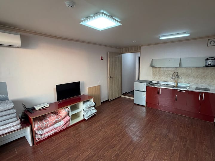 เราเป็นเพนชั่นประเภทคอนโดแห่งเดียวในเกาะเชจู และเรามีอาคาร A พร้อมห้องอุ่นและอาคาร B พร้อมห้องนอนเพื่อให้คุณสามารถเลือกห้องตามความต้องการของคุณ