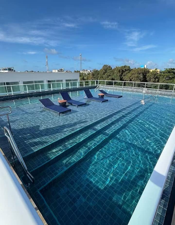 นี่เป็นหนึ่งในที่พักไม่กี่แห่งของย่านนี้ที่มีสระว่ายน้ำ