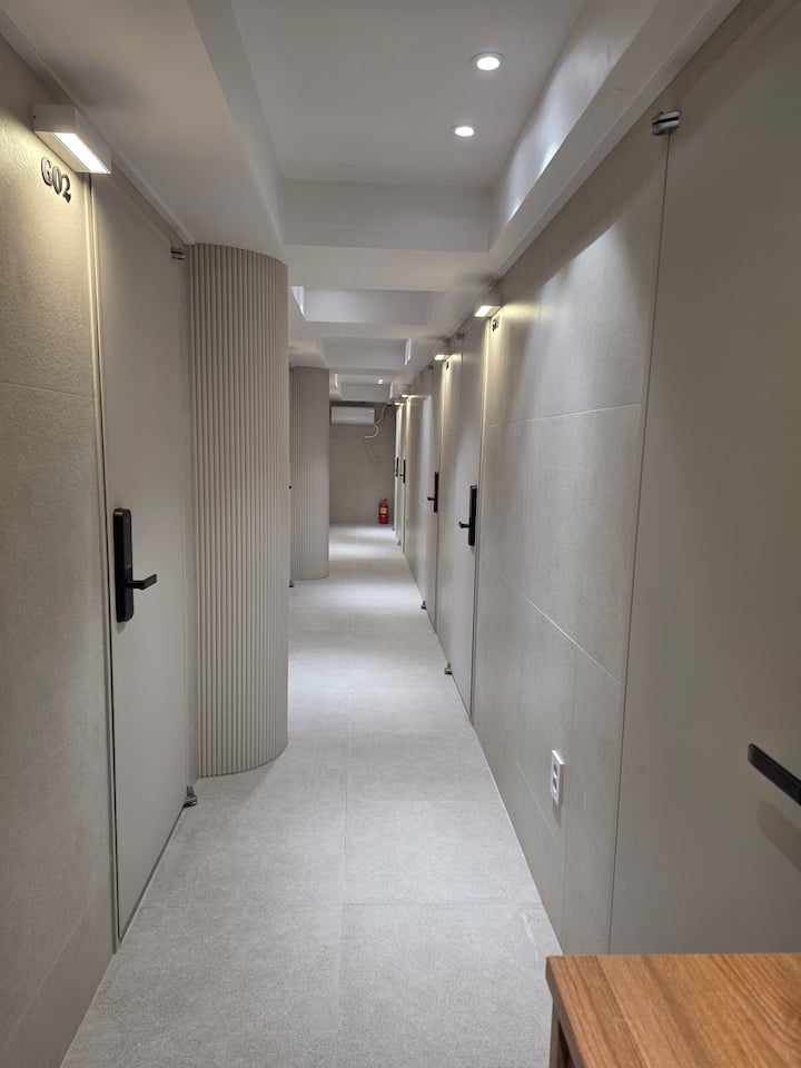 🏨 มินิโฮเทลที่เพิ่งปรับปรุงใหม่ · เดิน 3 นาทีถึงสถานีซินชอน (ทางออก 6)
