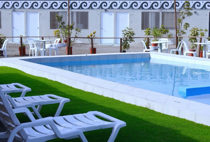 นี่เป็นหนึ่งในที่พักไม่กี่แห่งของย่านนี้ที่มีสระว่ายน้ำ