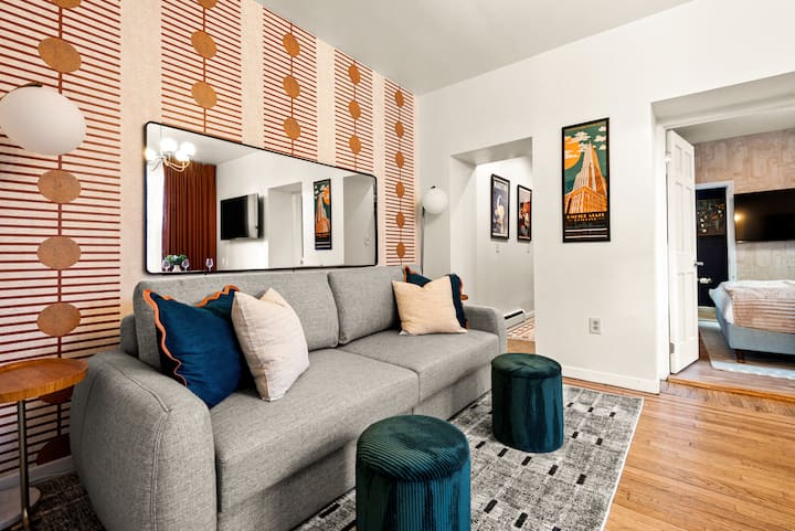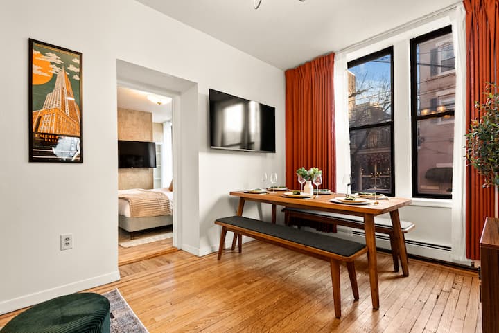 อาร์ตเดโค 2 ห้องนอน|2 ห้องน้ำ•เตียงคิงไซส์ 6 เตียง•ไม่กี่นาทีถึงนิวยอร์ก