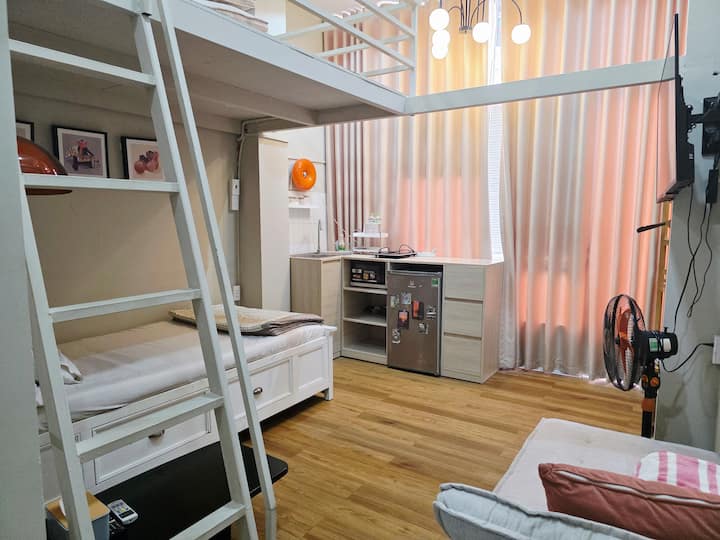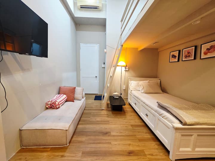 สตูดิโอสว่าง อบอุ่น เงียบสงบ อยู่ใจกลางเมือง D1 เช็กอินด้วยตนเอง