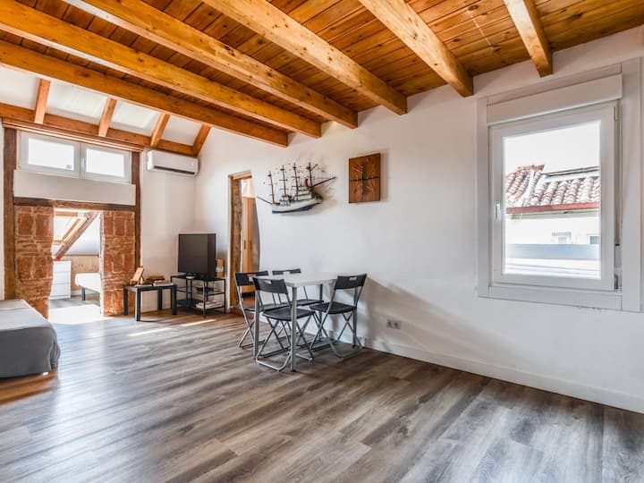 อพาร์ตเมนต์ตั้งอยู่ ตั้งอยู่บนถนนเอสปิริตู ซานโต ตรงข้ามกับจัตุรัสฮวน ปูโฆลอันงดงาม ในย่านมาลาซานาที่คึกคักย่านนี้ขึ้นชื่อเรื่องบรรยากาศแบบโบฮีเมียน ถนนที่มีเสน่ห์ บาร์ทาปาส ร้านขายของวินเทจ และร้านอาหาร