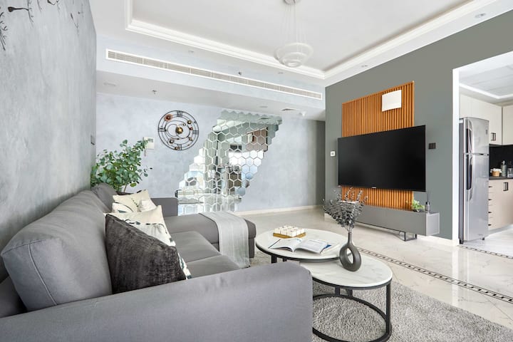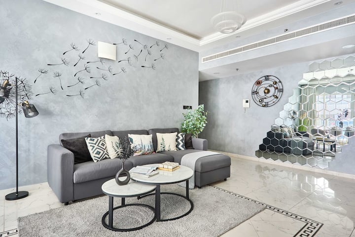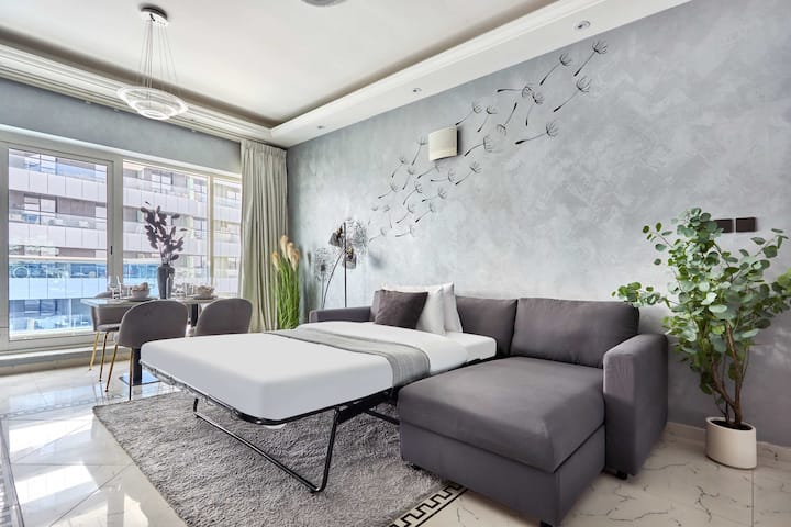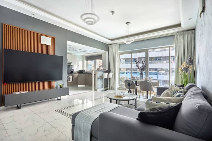 ห้องพัก 1 ห้องนอนสไตล์โมเดิร์นพร้อมวิวเมืองในดูไบมารีน่า!