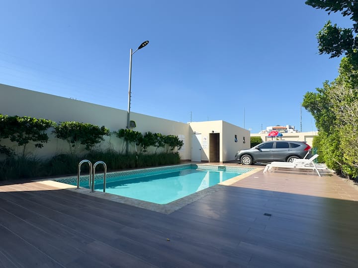 นี่เป็นหนึ่งในที่พักไม่กี่แห่งของย่านนี้ที่มีสระว่ายน้ำ