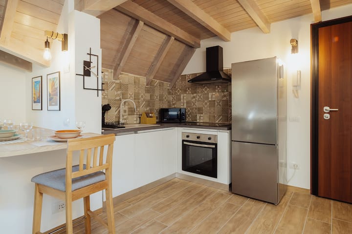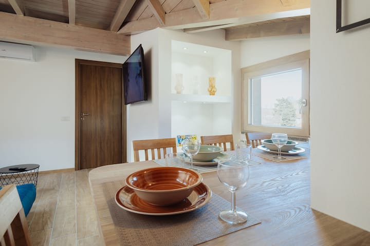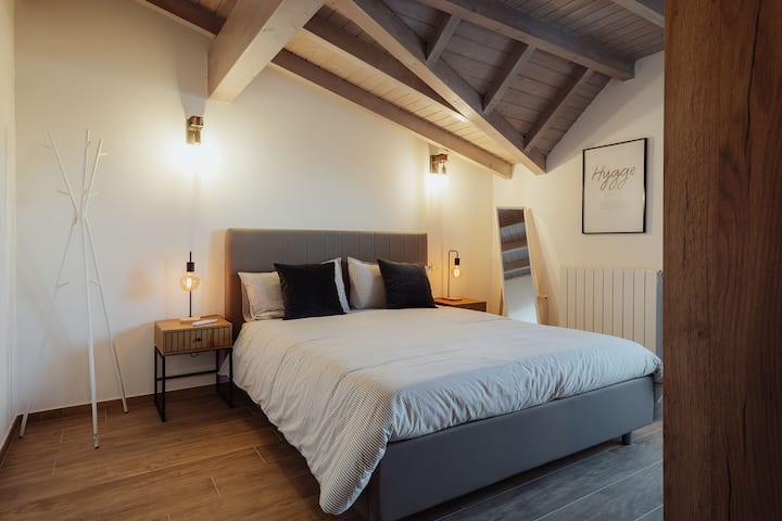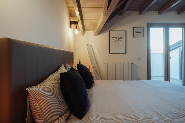 ที่พักสไตล์ร่วมสมัยบนชั้นดาดฟ้าที่มีเพดานคานไม้
