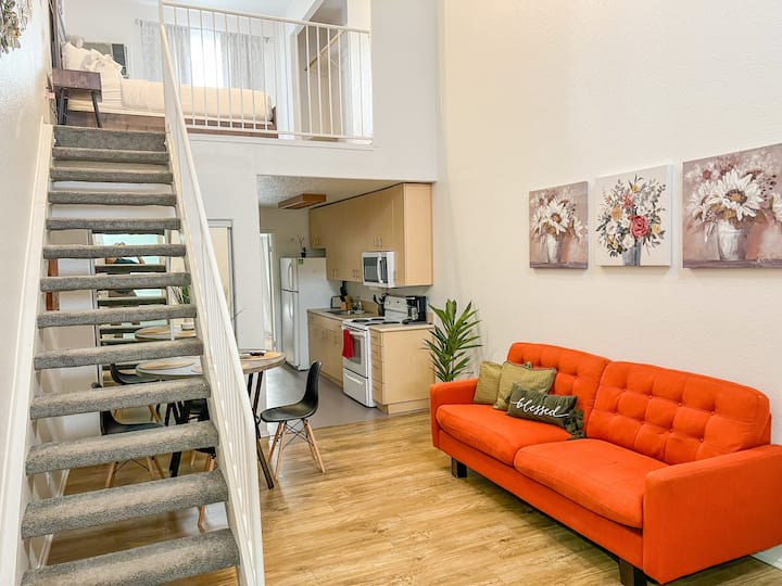 ลอฟท์ที่สดชื่นใหม่ในตัวเมืองซานดิเอโกตั้งอยู่ห่างจากลิตเติลอิตาลีเพียงไม่กี่ช่วงตึกและเดินไปยังเขต Gaslamp และสวน Balboa ได้ในระยะสั้นๆ! นี่เป็นห้องใต้หลังคา 2 ชั้นที่สวยงามพร้อมลานดาดฟ้าส่วนตัว ห้องใต้หลังคาชั้นบนมีเตียงควีนไซส์ขนาดใหญ่พร้อมทางเข้าสู่ระเบียงโดยตรง โปรดทราบว่านี่เป็นที่พักสไตล์ลอฟท์และไม่มีประตูเพื่อความเป็นส่วนตัวอย่างสมบูรณ์ ชั้นล่างคุณจะพบกับห้องนั่งเล่นที่กว้างขวางพร้อมโซฟาที่สะดวกสบายและทีวีเพื่อรองรับทั้งงานเลี้ยงของคุณ เมื่อเดินผ่านอพาร์ทเมนท์คุณจะพบกับห้องครัวที่มีอุปกรณ์ครบครันซึ่งนำคุณไปยังห้องนอนที่ 2 ที่พักนี้มีเตียงควีนไซส์พร้อมหน้าต่างที่สว่างเป็นพิเศษ!