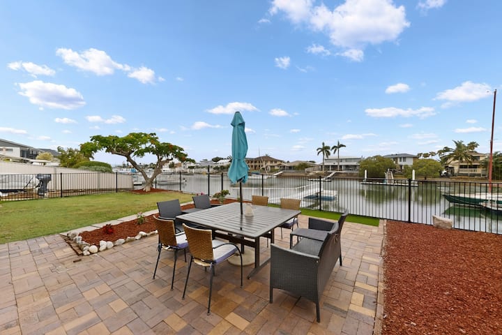 ก้าวเข้ามาและผ่อนคลายในบ้านริมคลองที่ได้รับการปรับปรุงใหม่อย่างสวยงาม ออกแบบมาเพื่อความสะดวกสบาย พื้นที่ และการใช้ชีวิตริมชายฝั่งที่ง่ายดาย พื้นที่ในอาคารกว้างขวางและพื้นที่กลางแจ้งที่น่าดึงดูด เหมาะสำหรับครอบครัว กลุ่ม หรือการเข้าพักระยะยาว