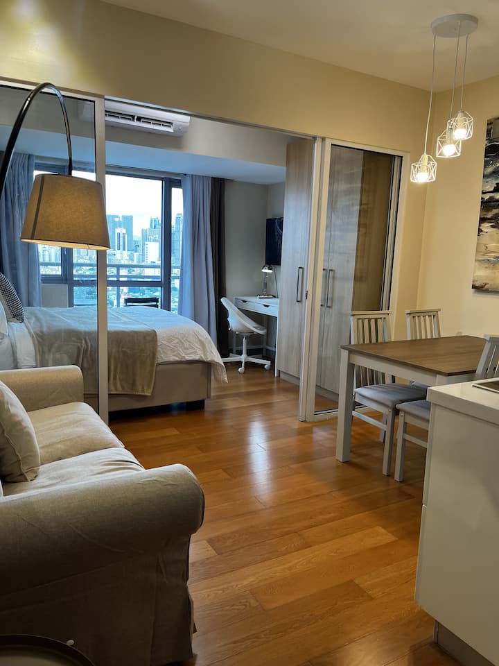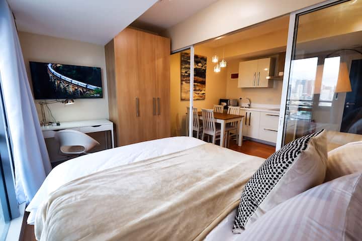 สตูดิโอขนาด 30 ตร.ม. พร้อมระเบียงส่วนตัวนี้มีทุกสิ่งที่คุณต้องการเพื่อการเข้าพักที่สะดวกสบาย มีผ้าปูที่นอนสะอาด เครื่องครัวและอุปกรณ์ทำอาหารพื้นฐาน สมาร์ททีวี เครื่องปรับอากาศ ฝักบัวน้ำร้อนและน้ำเย็น และการเชื่อมต่ออินเทอร์เน็ตไฟเบอร์ความเร็ว 100 Mbps