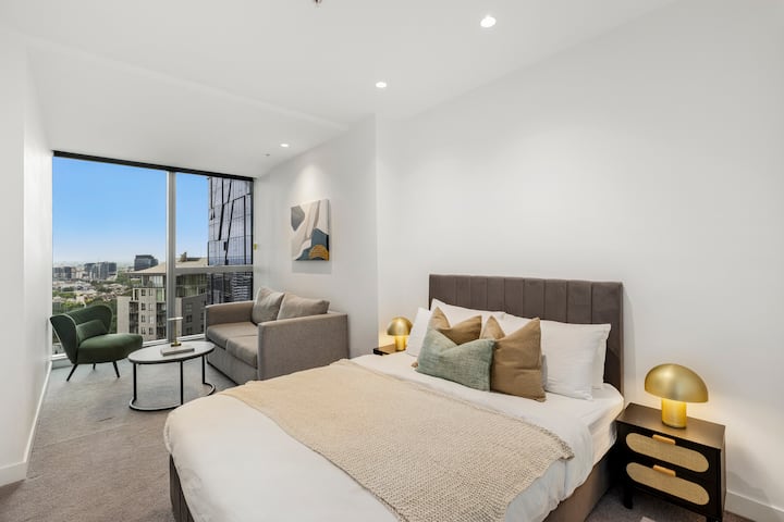 ห้องพักสุดหรูในย่านธุรกิจกลาง 1 ห้องนอน | นอนได้สูงสุด 4 คน | สระว่ายน้ำ ห้องออกกำลังกาย และซาวน่า