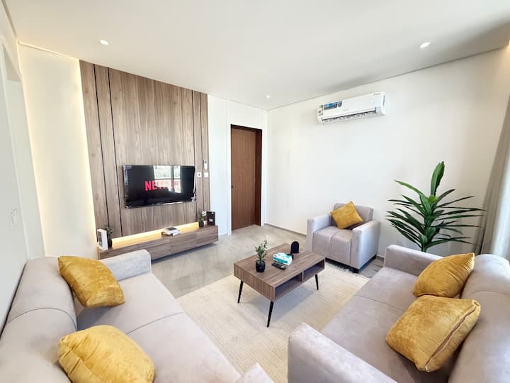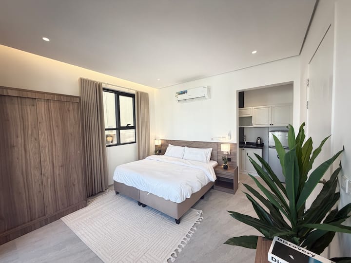 9) อพาร์ทเมนท์หรูหรา ประกอบด้วยห้องนั่งเล่น ห้องครัว ห้องน้ำ และสวนด้านหน้า